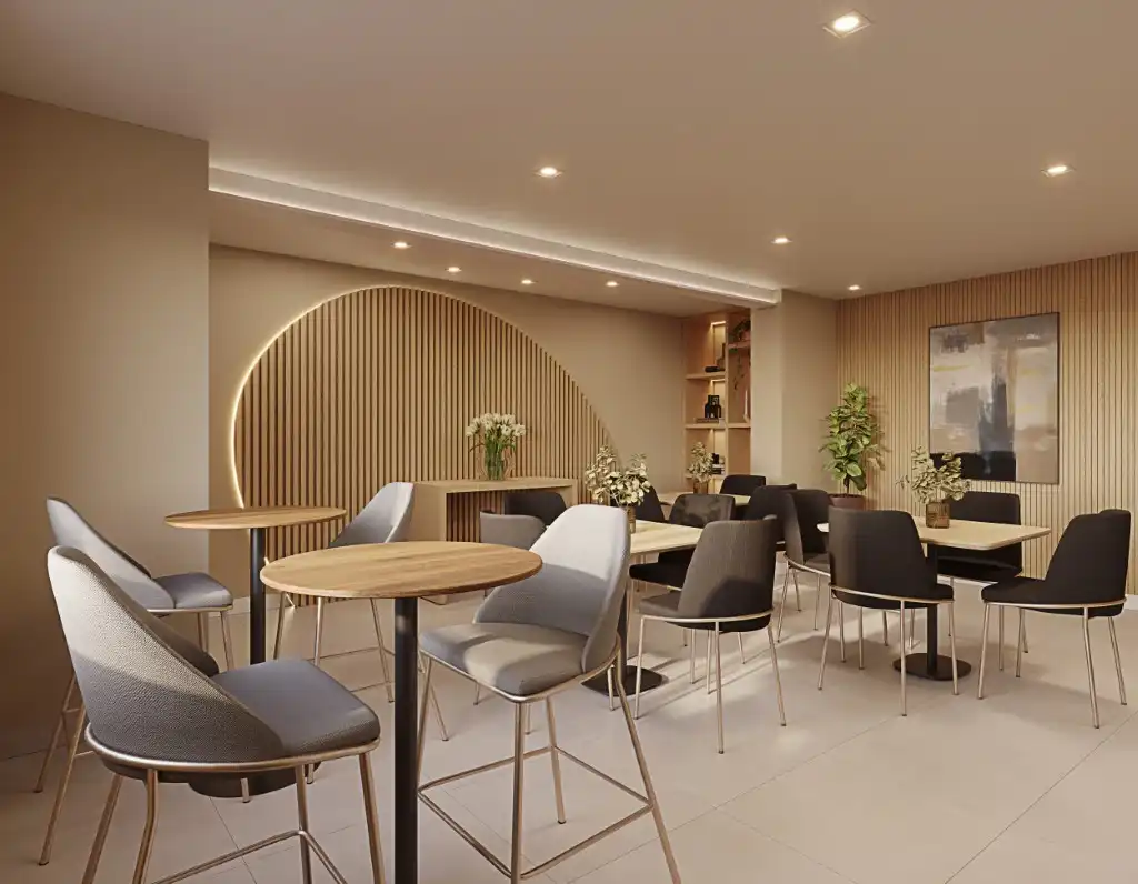 O lazer completo valoriza ainda mais a experiência: academia, coworking, áreas de convivência e serviços que facilitam o dia a dia.